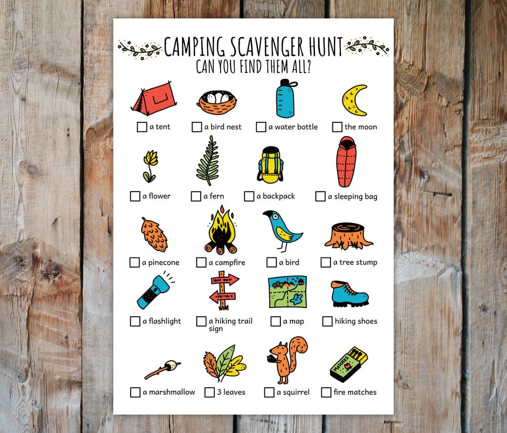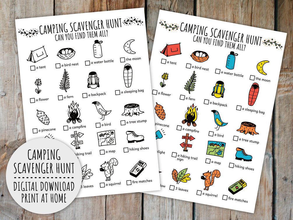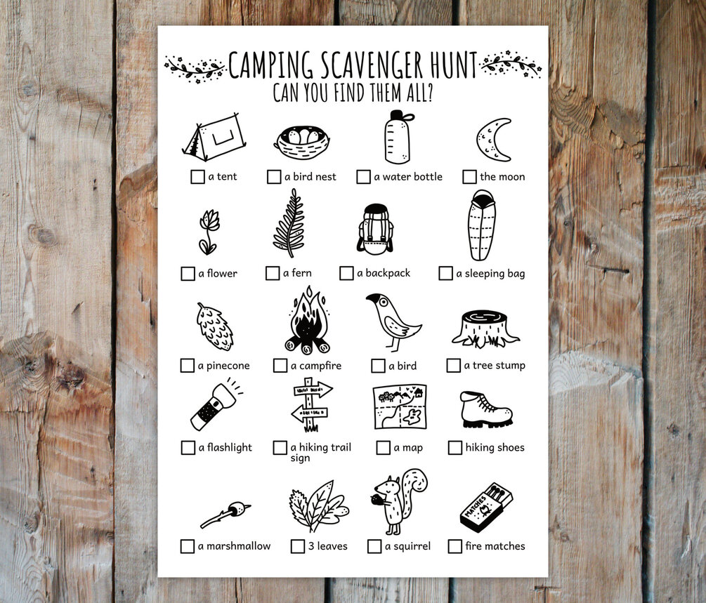 Camping Scavenger Hunt Printable For Kids, Treasure Hunt And Summer Camping Activity (Printable PDF in Color + B/W)