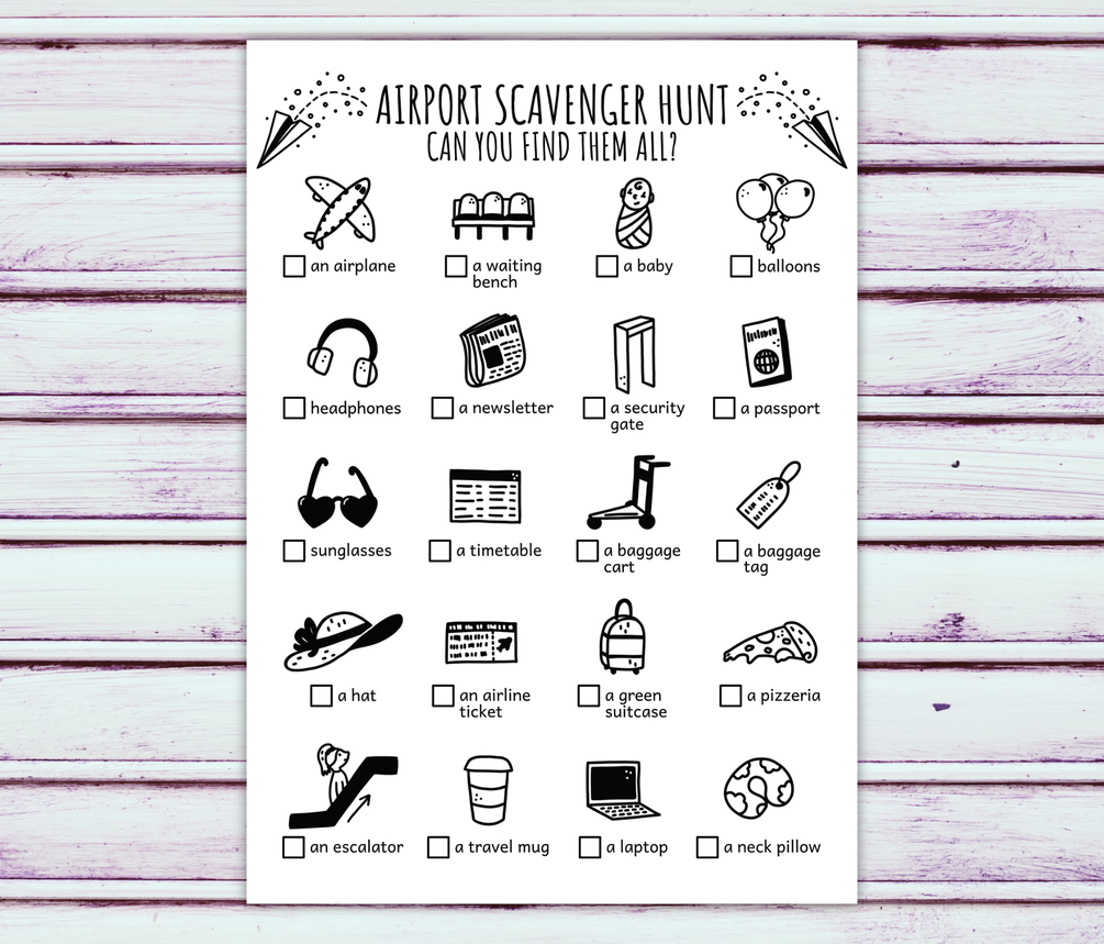Airport Scavenger Hunt For Kids, Travel Treasure Hunt, Family Vacation And Airplane Scavenger Hunt (Printable PDF in Color + B/W)