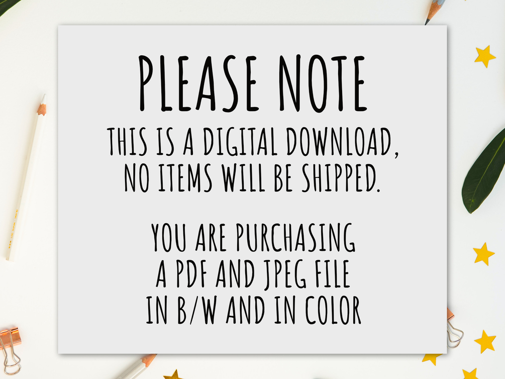 You'll get 2 digital scavenger hunts, one in color and one in black and white. You can download them as PDF or as JPG.