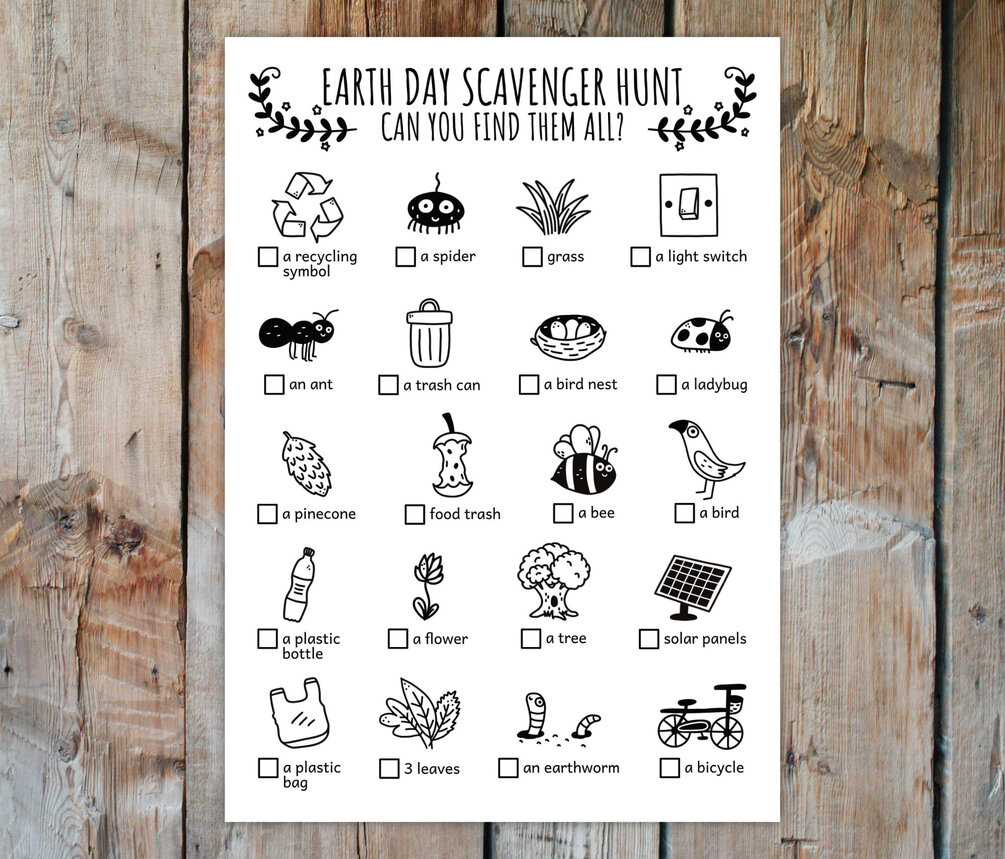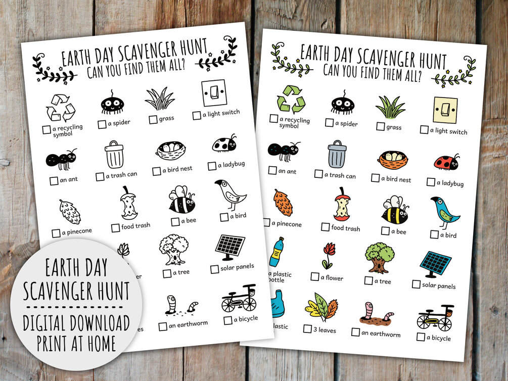 Earth Day Scavenger Hunt For Kids, Outdoor Go Green Treasure Hunt, Earth Day Family Activity And Game (Printable PDF in Color + B/W)