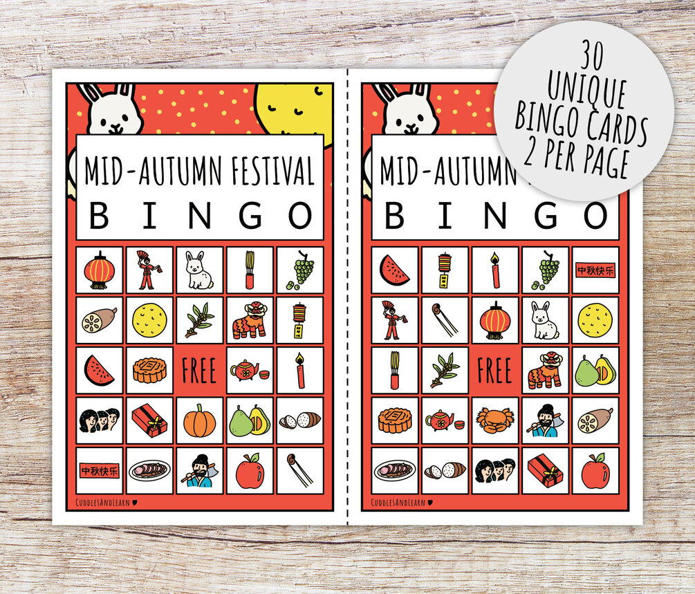 Mid-Autumn Festival Bingo Game For Kids, Kids Party Game, Harvest Classroom Game And Moon Festival Family Activity (Printable PDFs)