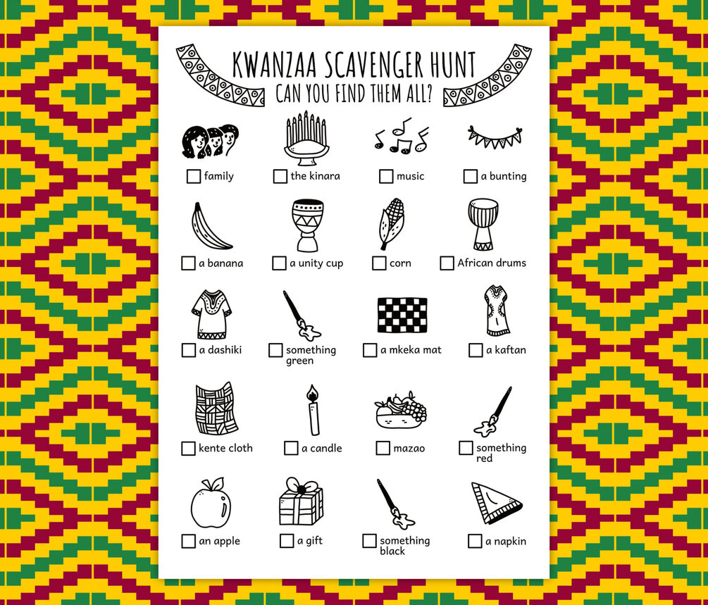 Kwanzaa Scavenger Hunt For Kids, African Festival Treasure Hunt, Party Activity, Africa Winter Game (Printable PDF in Color + B/W)