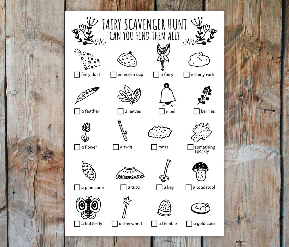Fairy Scavenger Hunt For Kids, Magical Forest Treasure Hunt, Outdoor Garden Fairy Birthday Party (Printable PDF in Color + B/W)