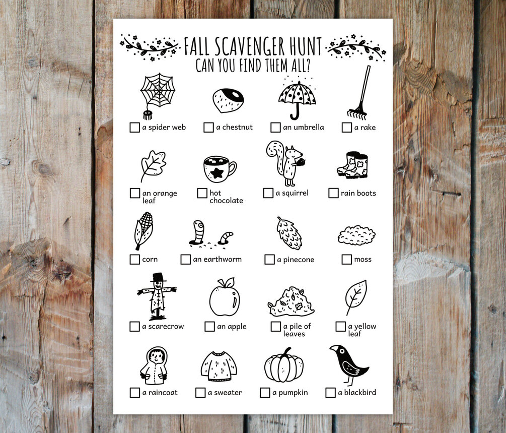 Fall Scavenger Hunt For Kids, Autumn Treasure Hunt, Fall Outdoor Activity And Seasonal Scavenger Hunt (Printable PDF in Color + B/W)