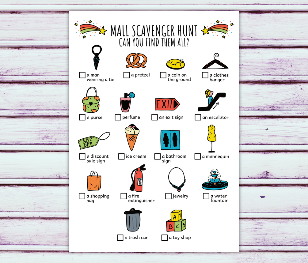 Mall Scavenger Hunt For Kids, Shopping Mall Treasure Hunt, Mall Party Game And Shopping Center Game (Printable PDF in Color + B/W)