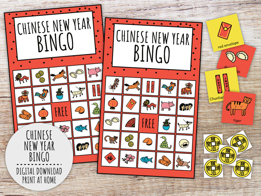 Chinese New Year Bingo Game For Kids, Kids Spring Festival Party Game, Classroom Game And Family Lunar holidays Activity (Printable PDFs)